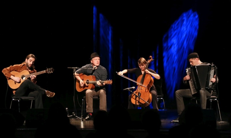 Mit Cello, Akkordeon und zwei Gitarren schaffen „Die Grenzgänger“ einen mitreißenden und modernen Klang, mischen Lieder aus dem Rinnstein und vergessene Perlen literarischer Salons und Theaterbühnen zu einer eigenständigen Musik zwischen Schubert und Tom Waits, Bertolt Brecht & Bob Marley.