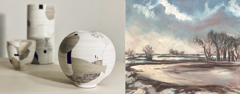 Die Formen bleiben reduziert, ruhig und klar – sie halten sich bewusst zurück, um dem Bild Raum zu geben. So entstehen keramische Arbeiten von stiller Präsenz – spannungsvoll, vieldeutig, offen für Assoziationen.